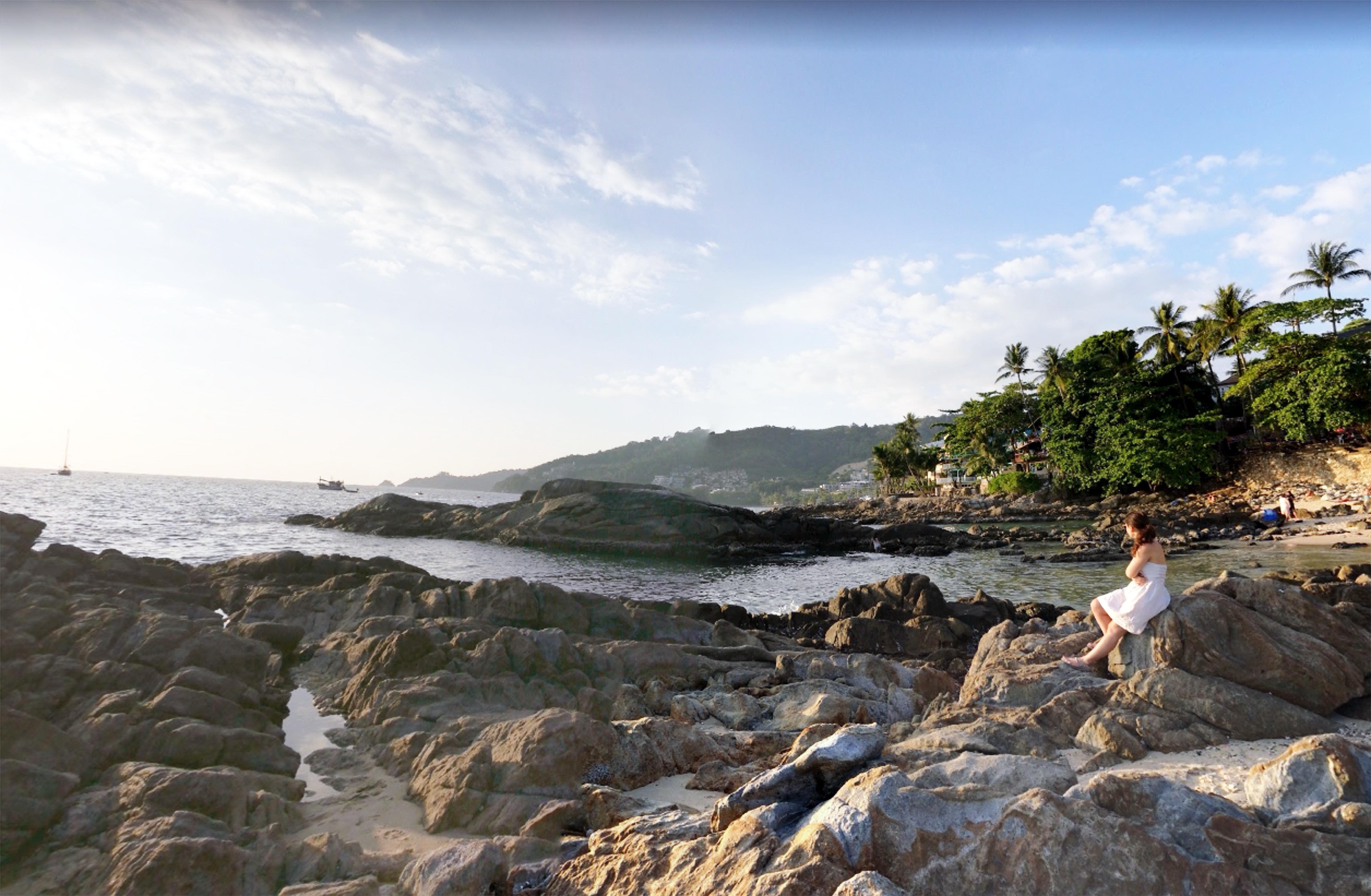 Beautiful scenic view of mountain sky with girl – free photo