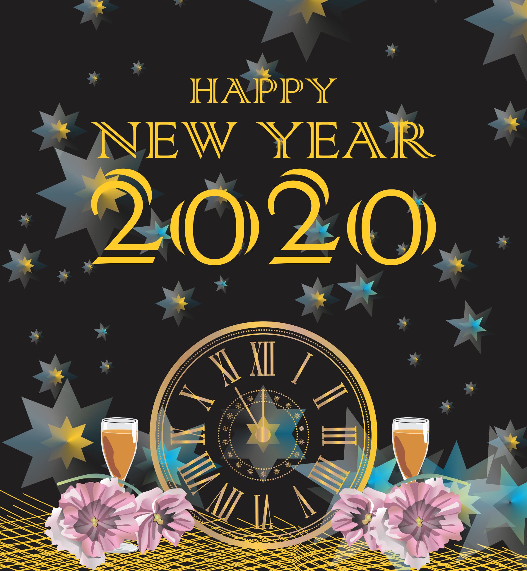 Creative black theme happy new year 2020 poster – free vector