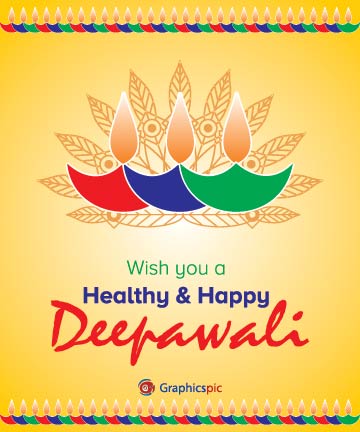 Diwali festival holiday background design with diya. Different color diya on yellow background