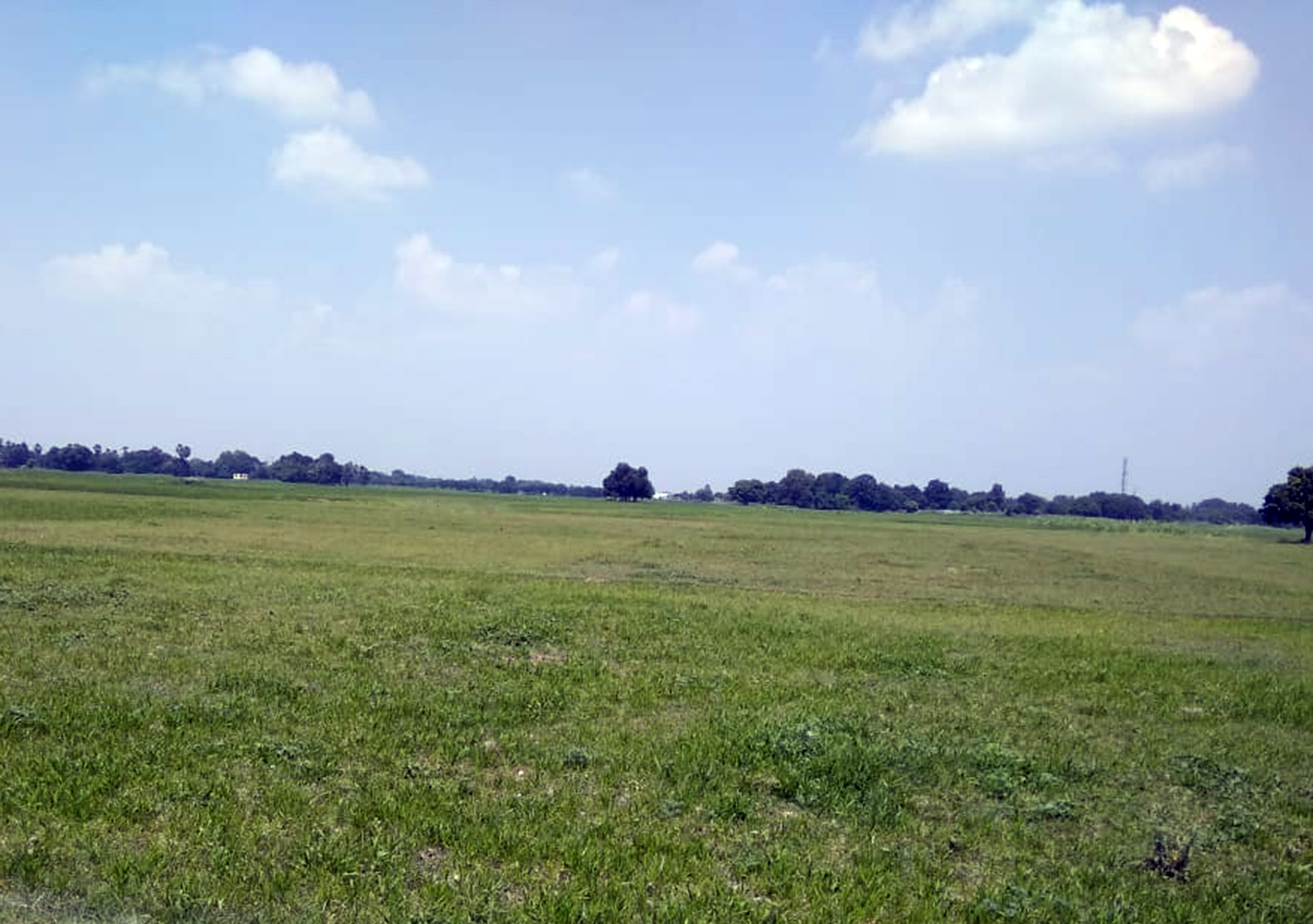 Green field summer blue sky background