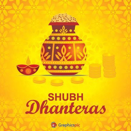 Happy dhanteras yellow background with gold coins