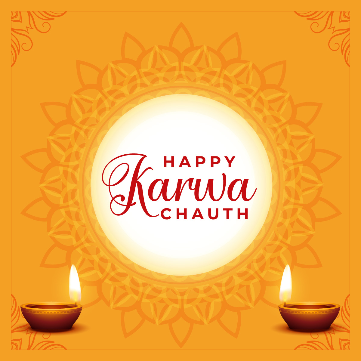 Happy karwa chauth festival card with sieve and diya vector – Free Vector