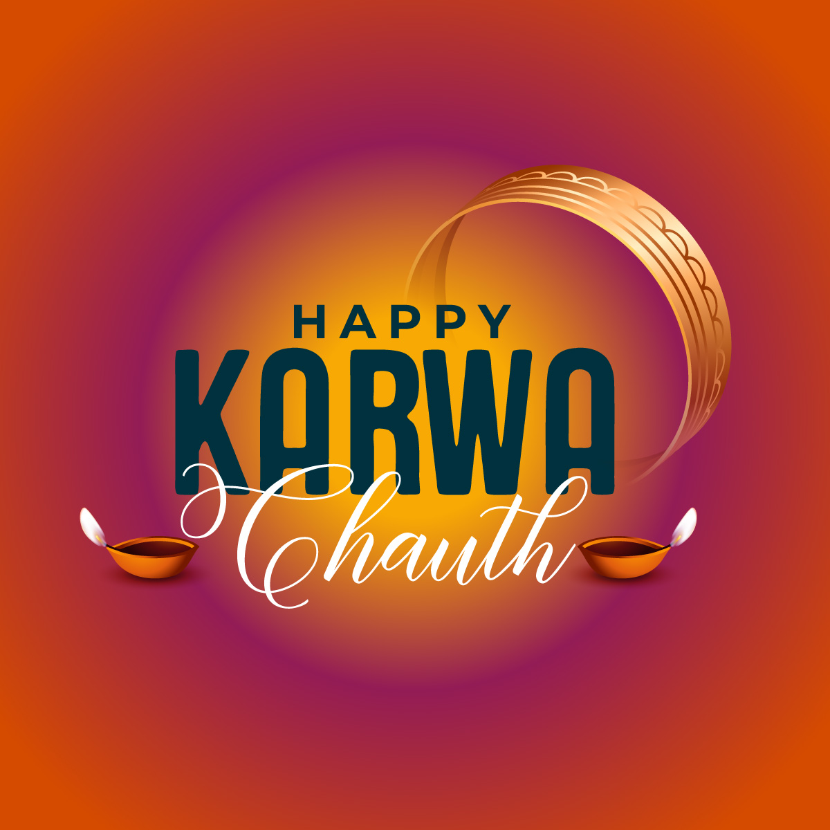 Happy karwa chauth indian festival card design with diya – Free Vector