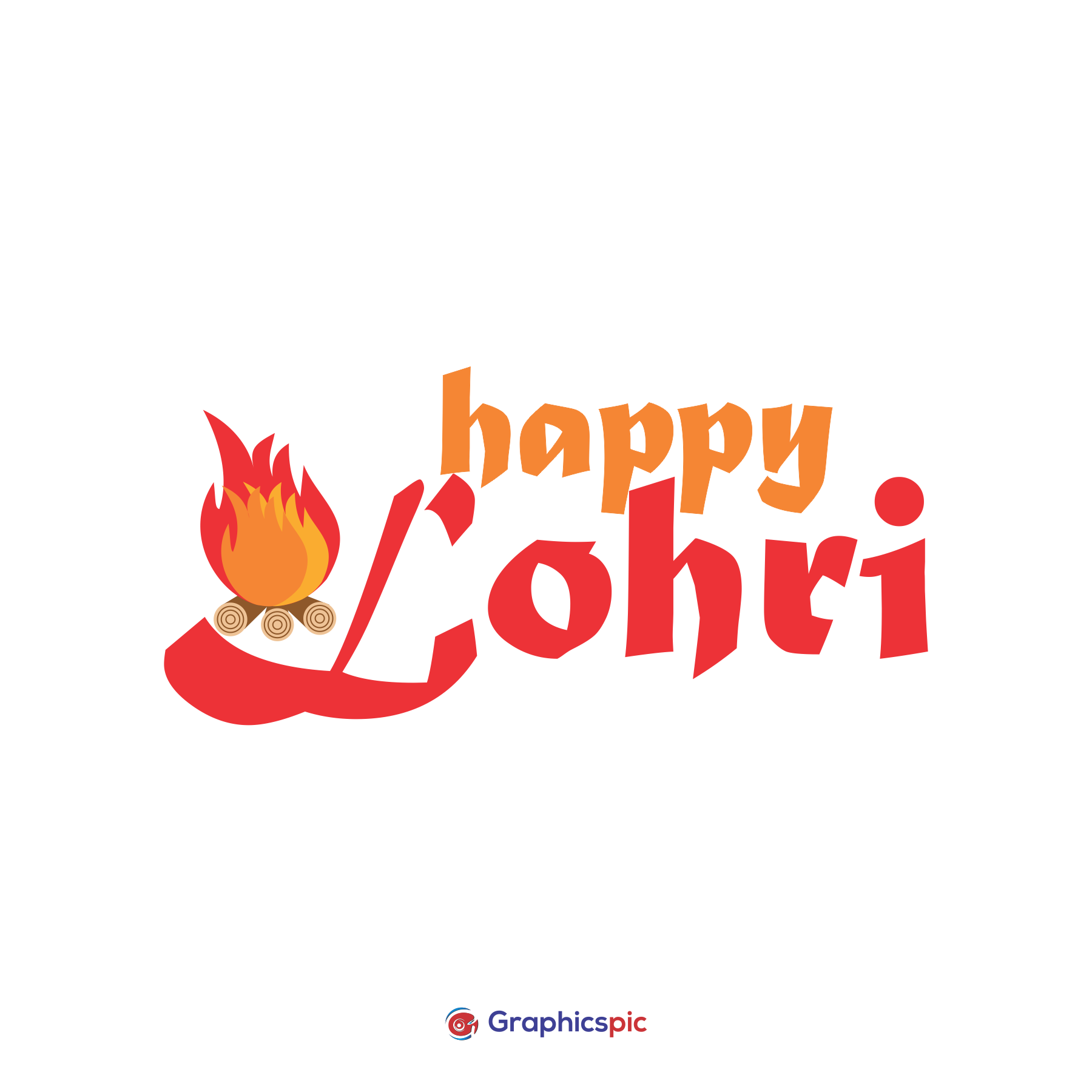 Happy Lohri text ornate lettering for greeting card. Indian holiday fire festival punjab – free vector
