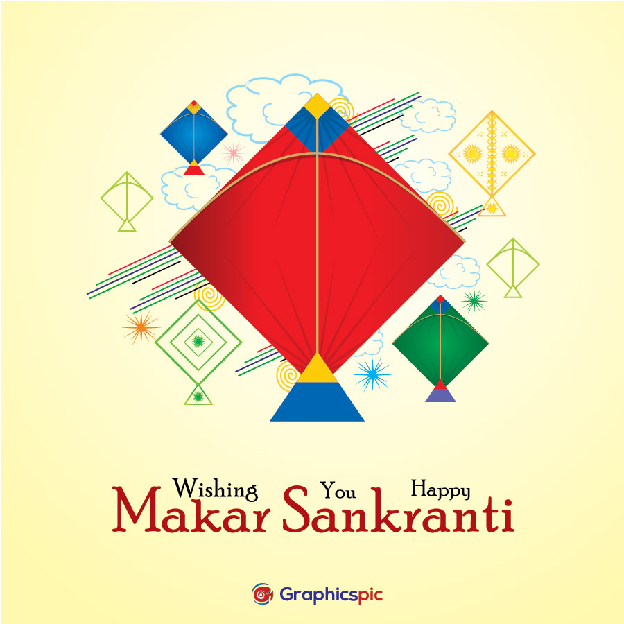 Happy makar sankranti festival post card with colorful kites – free vector