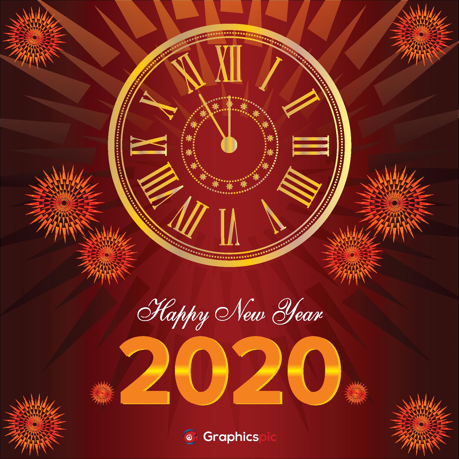 Happy new year 2020 background with clock – free vector