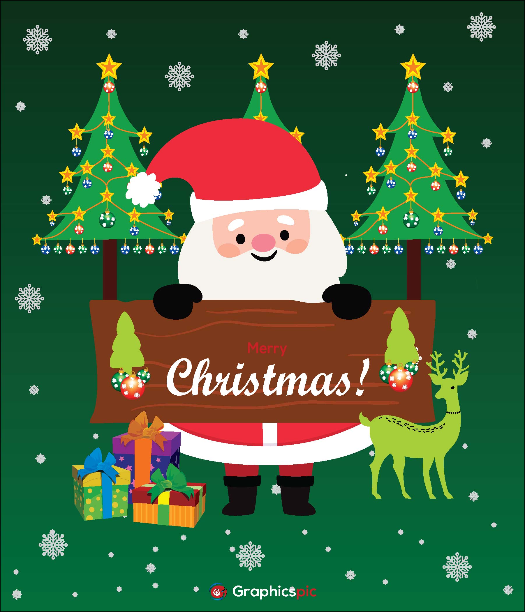 Merry christmas with santa greetings card Photo, vectors, graphics, clipart, design templates, and illustrations free download at graphicspic.com