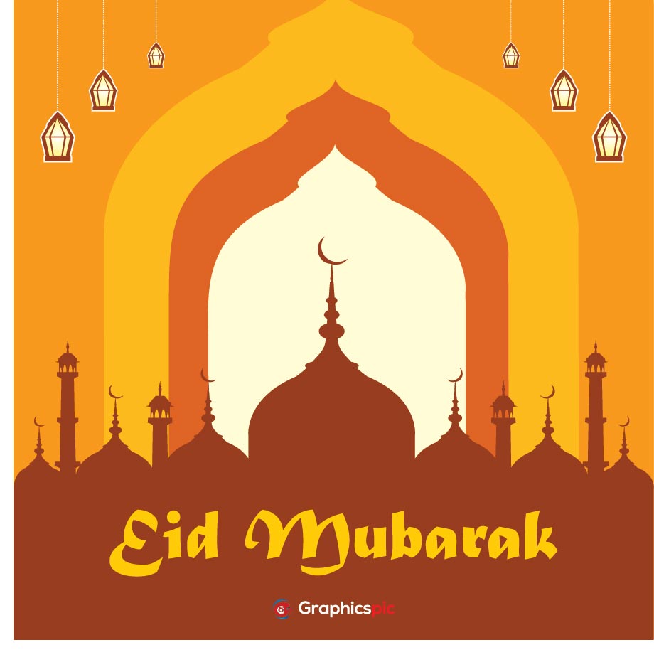 Realistic eid mubarak background with lalten and mosque illustration – Free Vector