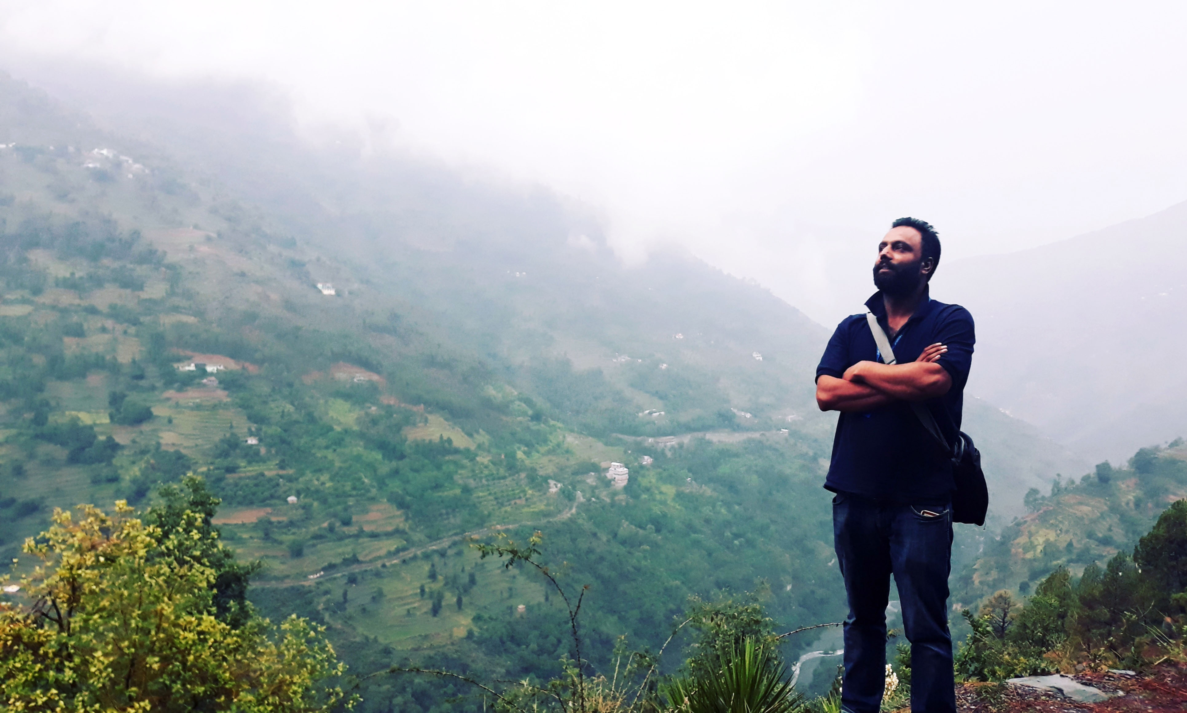 Rear view of man looking at sky in mountains – free photo