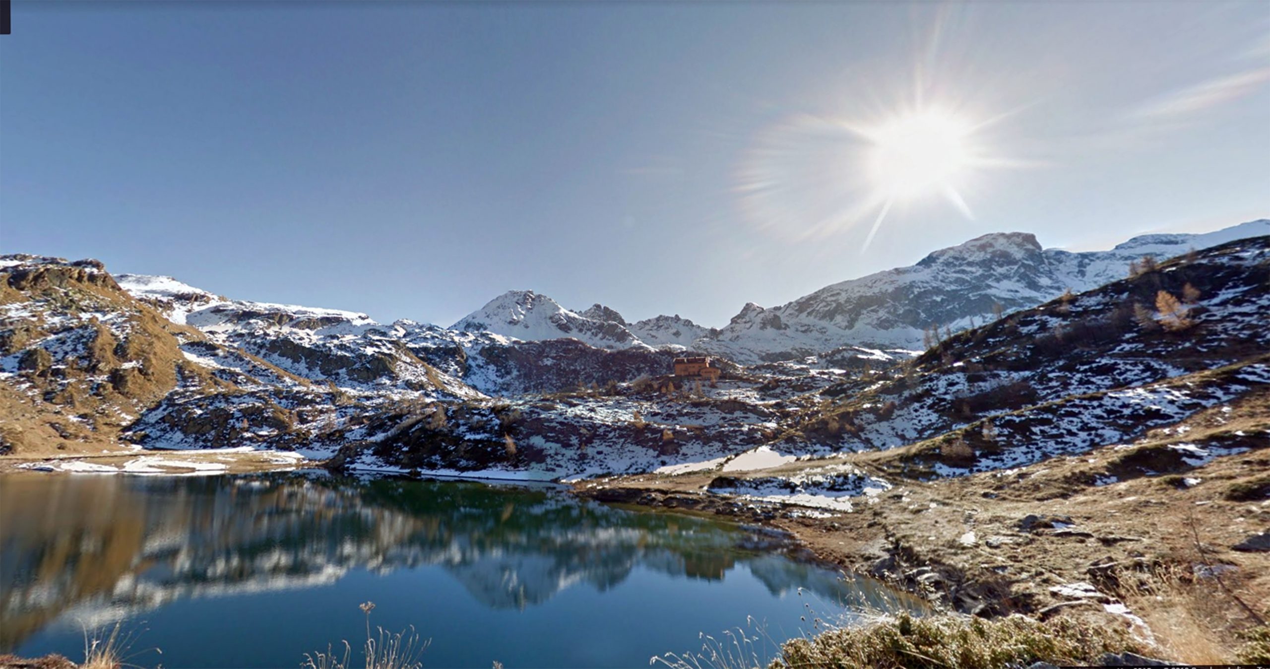 Scenic view of lake by snowcapped mountains with sky – free photo