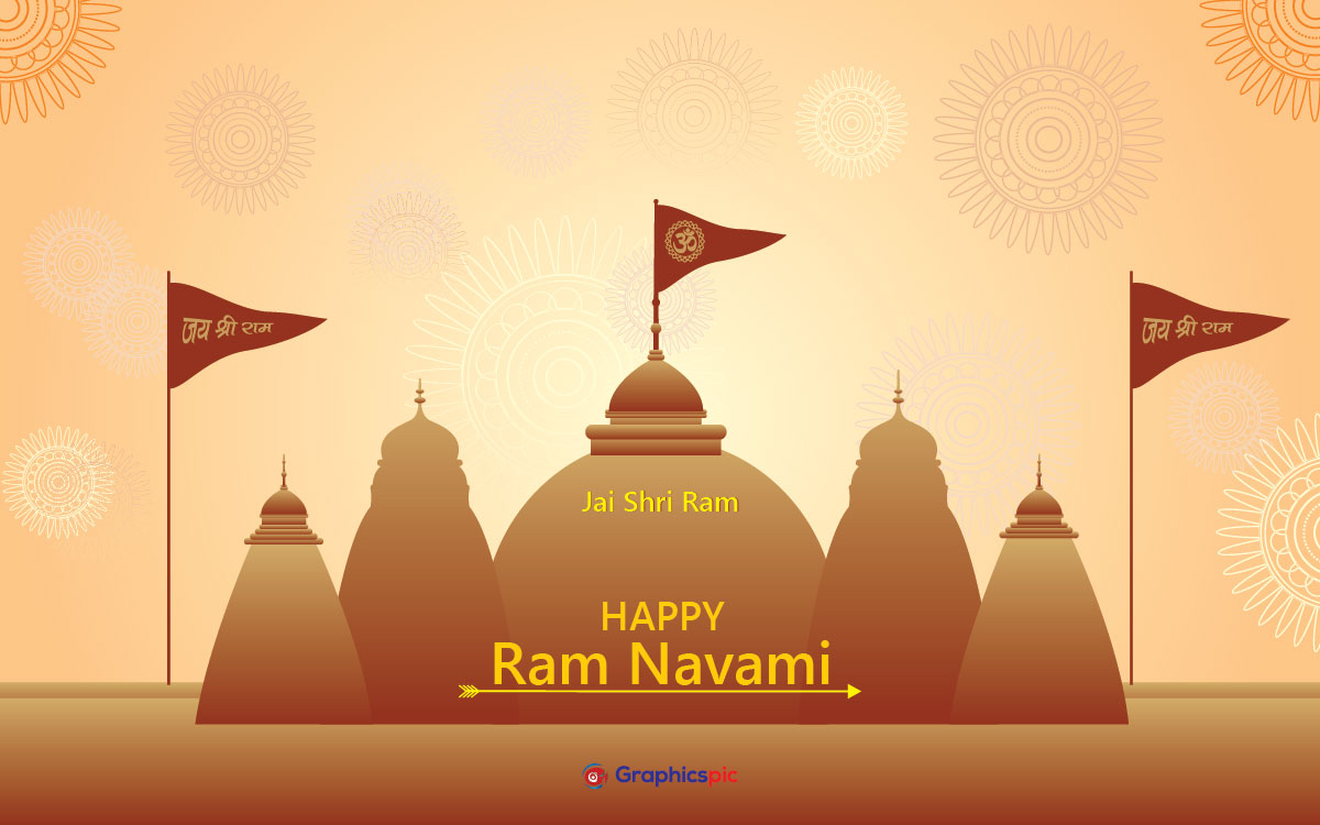Shree ram navami wishes card with temple background image – Free Vector