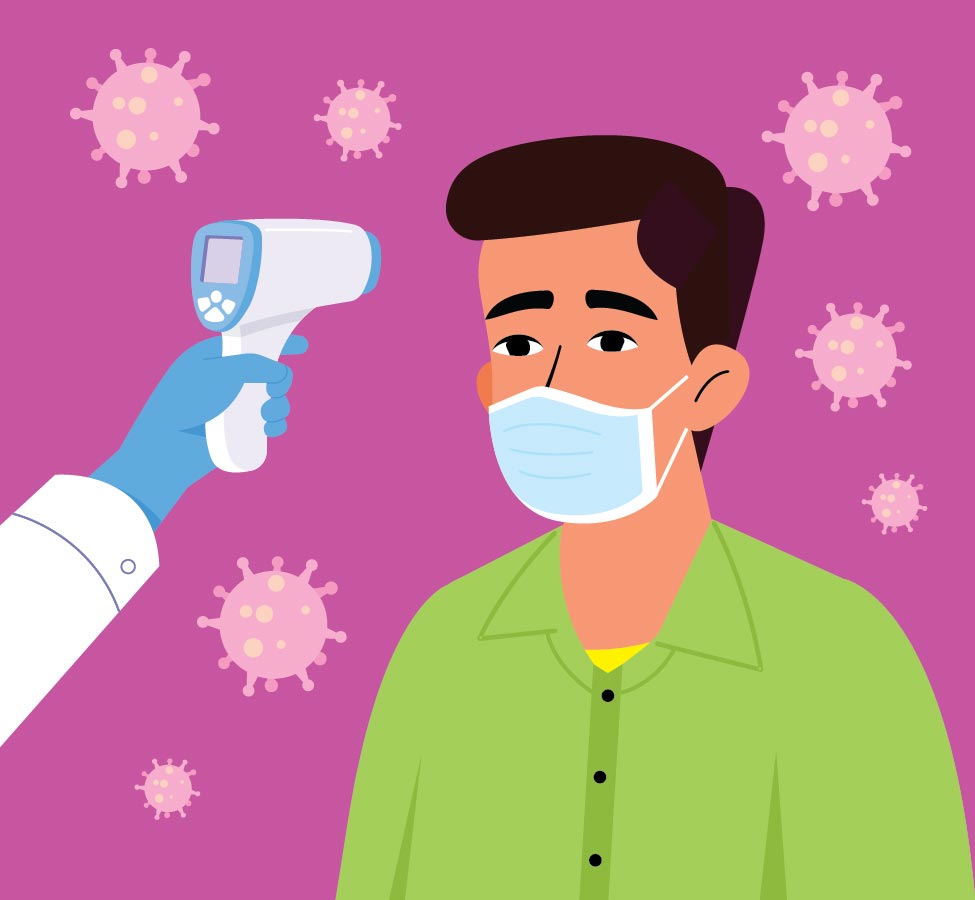 Temperature check. doctor holding a non-contact thermometer in hand illustration vector image