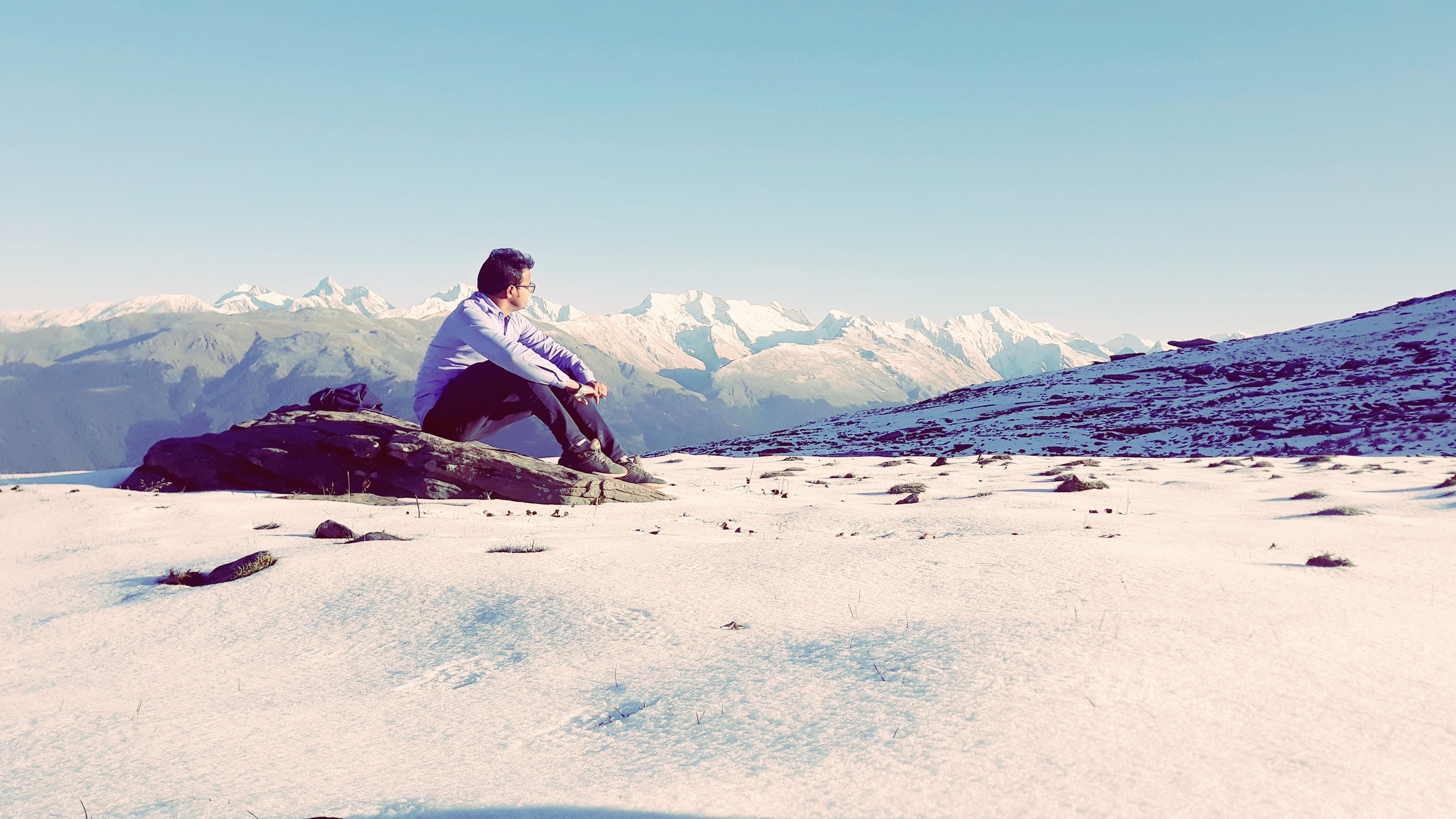 Tourist looking at beautiful ice landscape on mountain – free photo