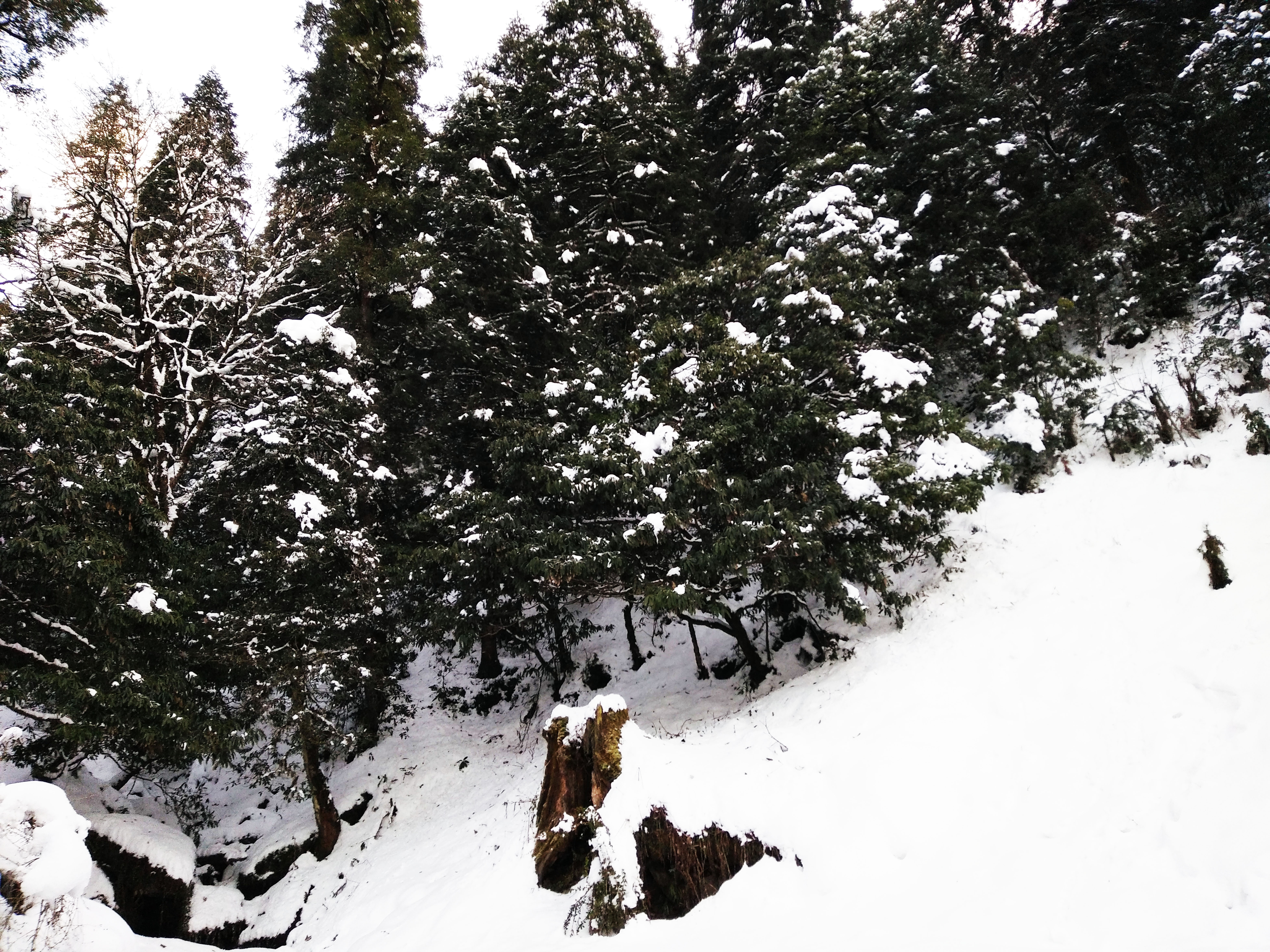 Tree & landscape filled with snowfall – free photo
