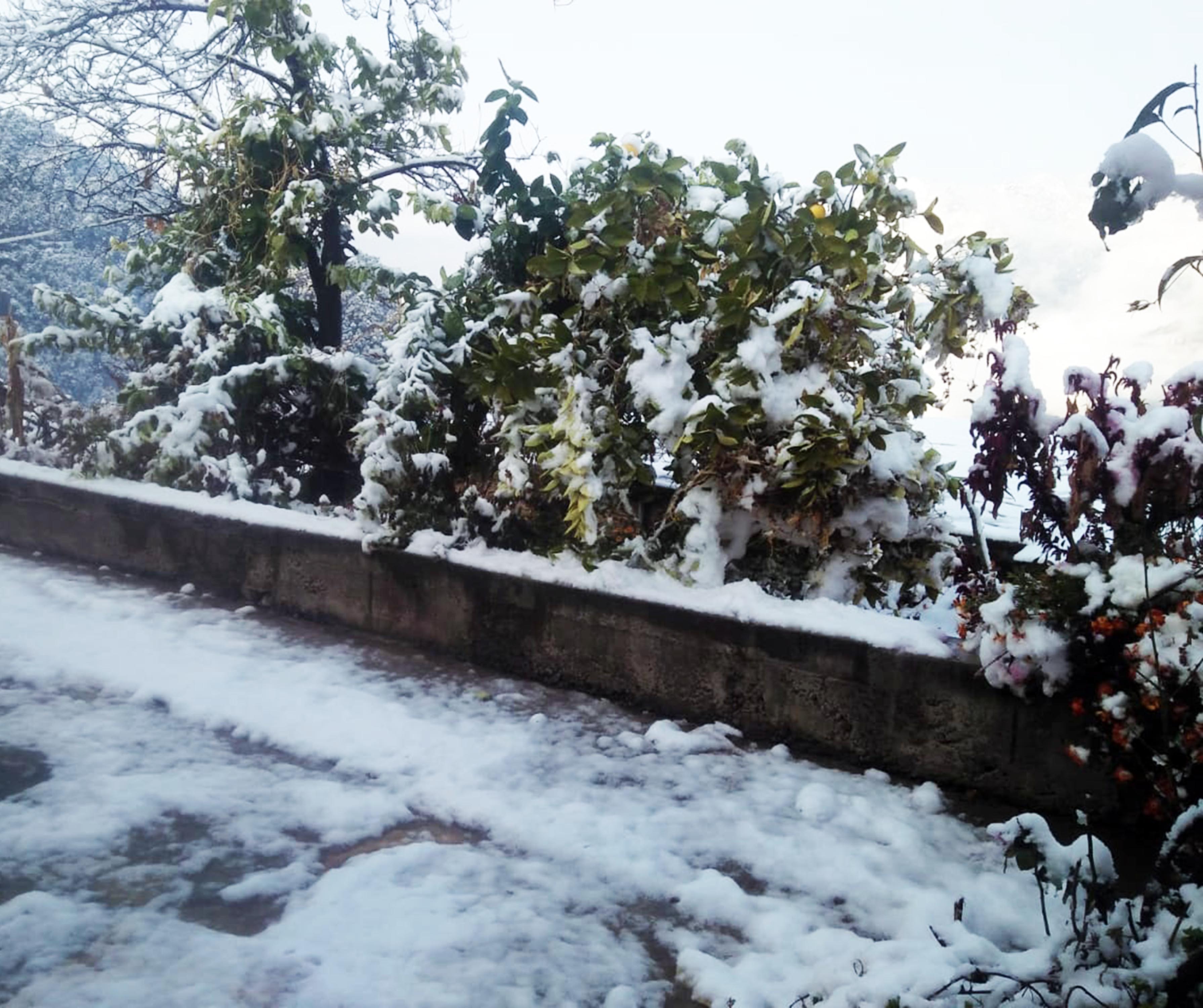 Tree & road filled with snowfall – free photo