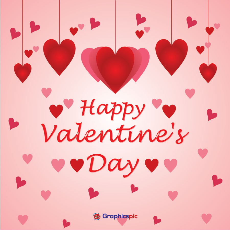 Valentines Day post background with hanging hearts. Love design concept – free vector
