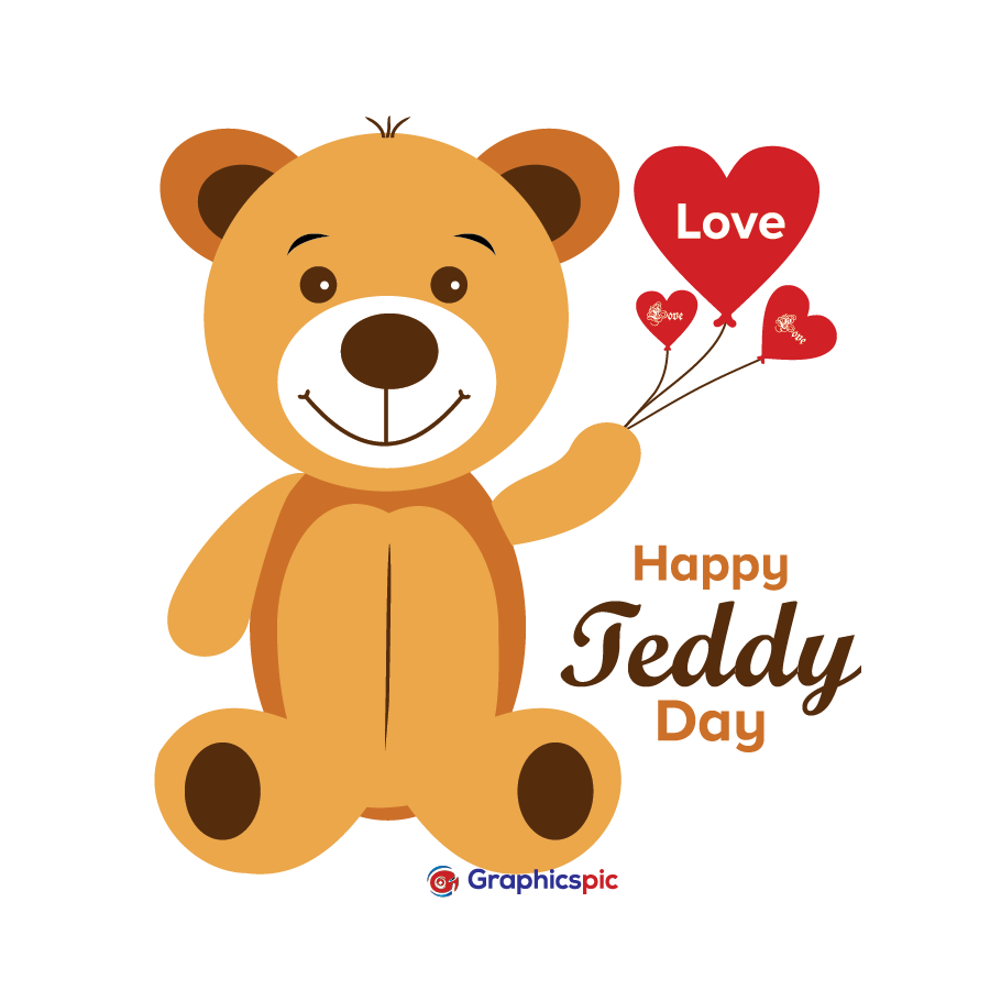 Vector illustration for happy teddy day February 10 with teddy & heart background design image – free vector