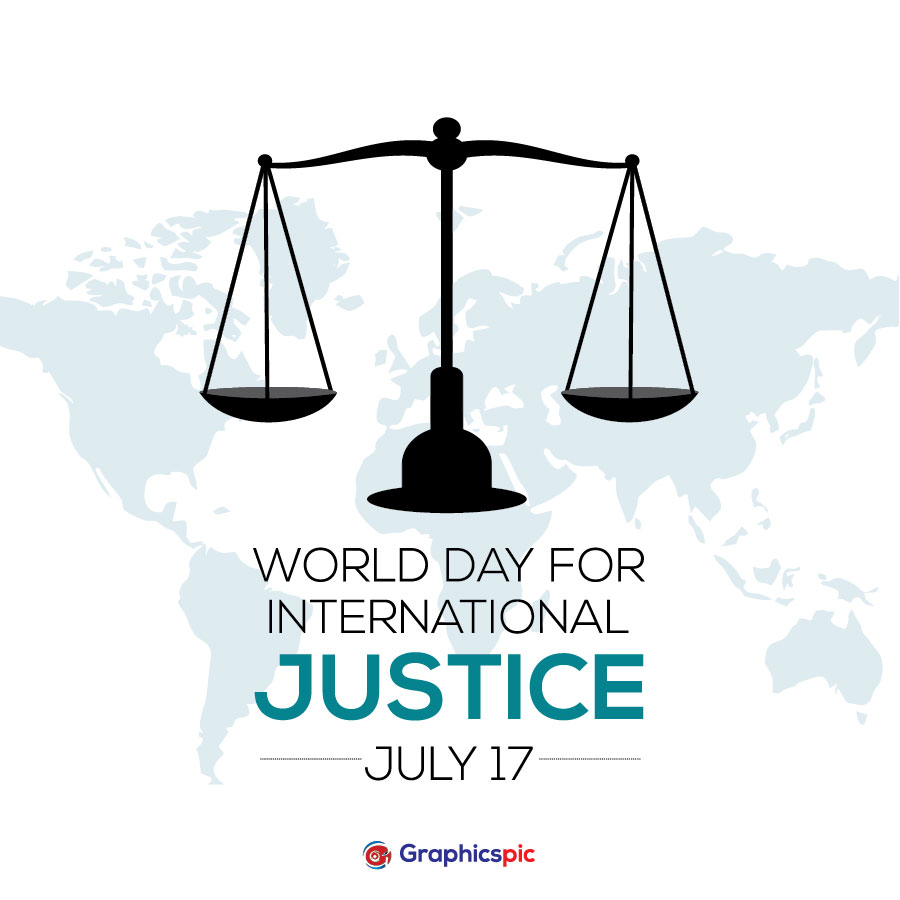 Vector illustration for world day for international justice observed on July 17 post design with justice scale symbol image – free vector