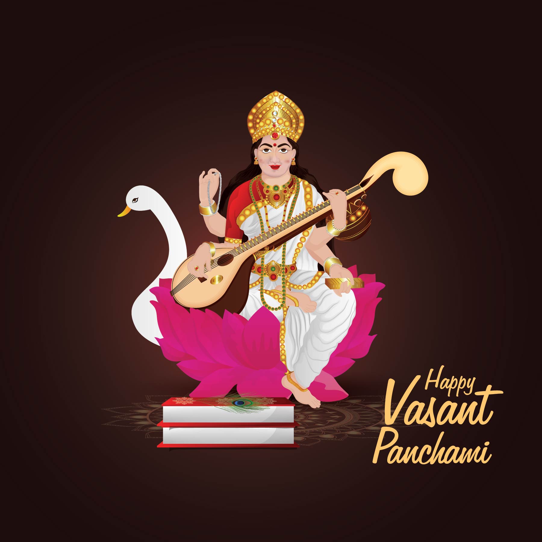 Vector illustration of Goddess of Wisdom Saraswati for Vasant Panchami India festival background image