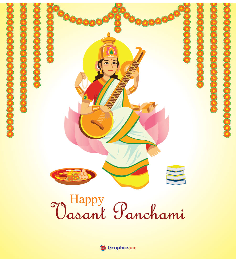 Vector illustration of Goddess Saraswati for Vasant Panchami Puja of India – Free Vector