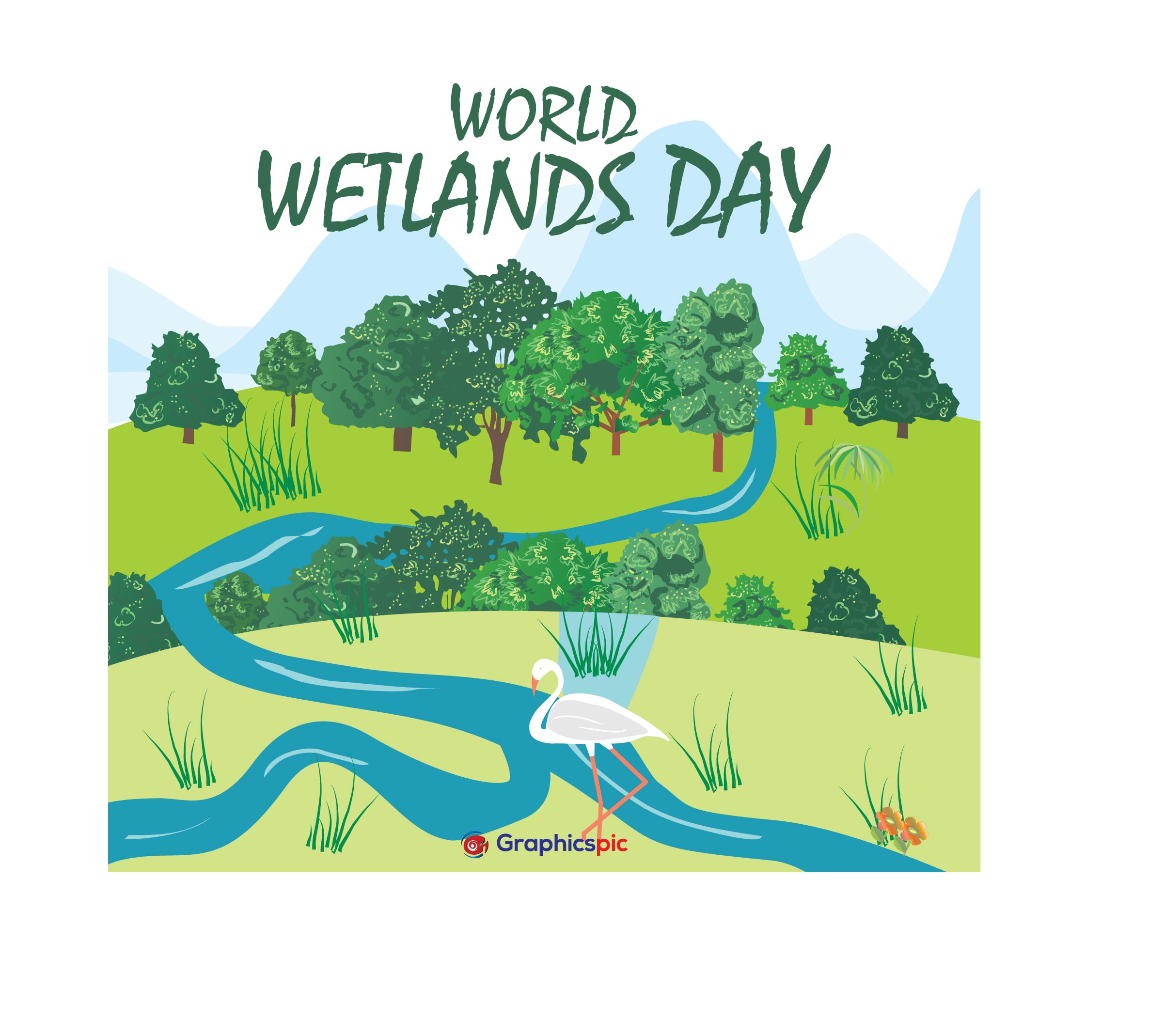 Wetland illustration. Easy to edit with vector file. Can use for your creative content. Especially about world wetland day campaign in february with river background pik.