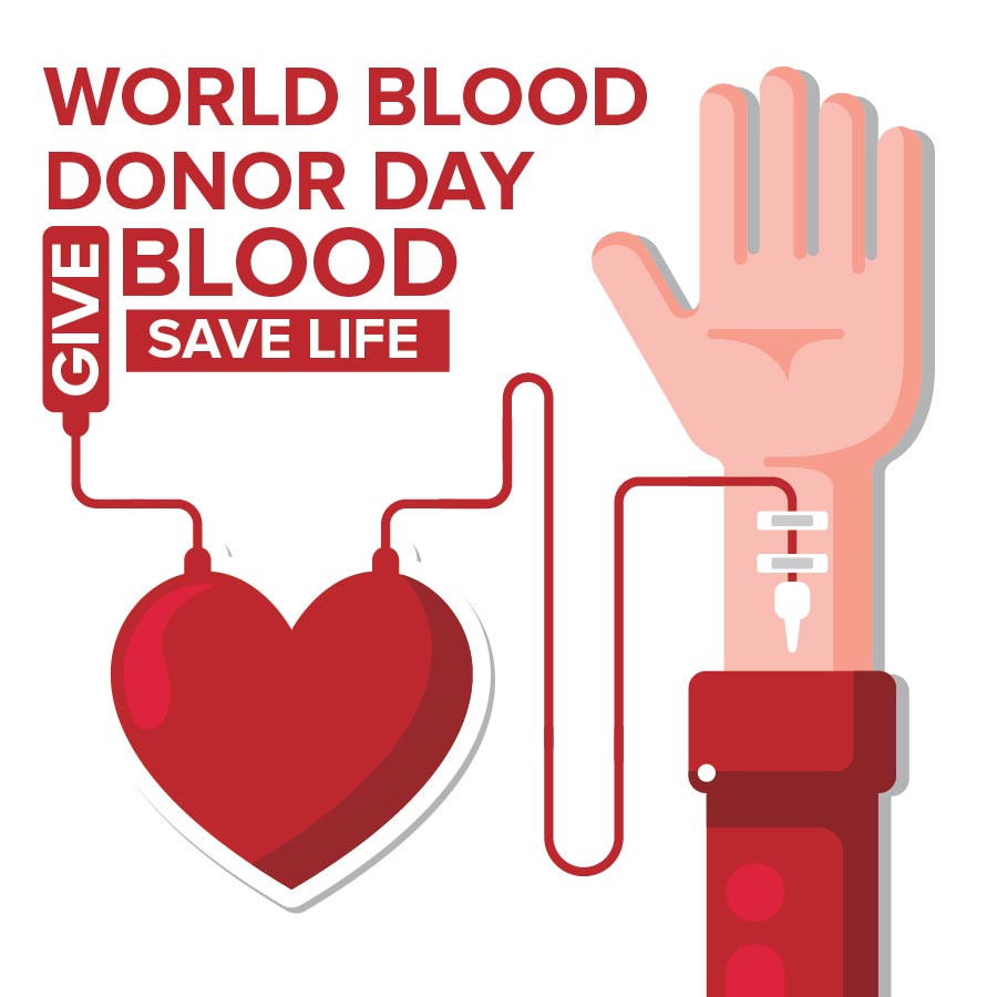 Vector illustration of world blood donor day background with arm and a heart – free vector