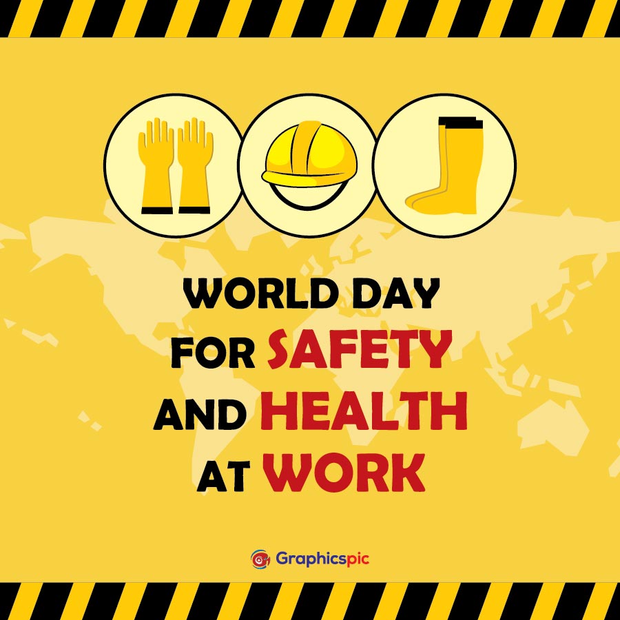 World day for safety and health at work with with world map & safety equip