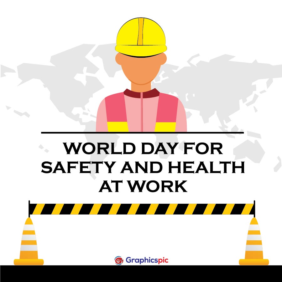 World safety and health at work day with worker, road corn illustration – free vector
