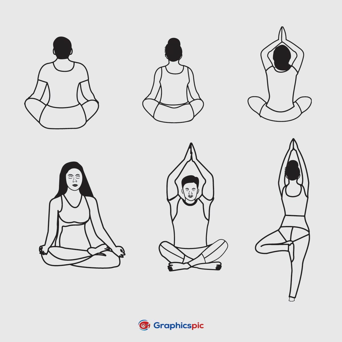 Yoga poses line art icons style. Vector illustrations